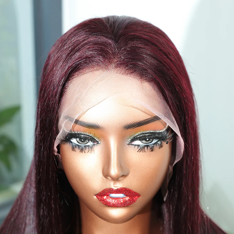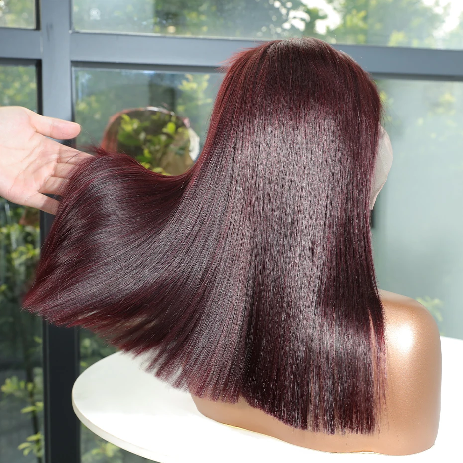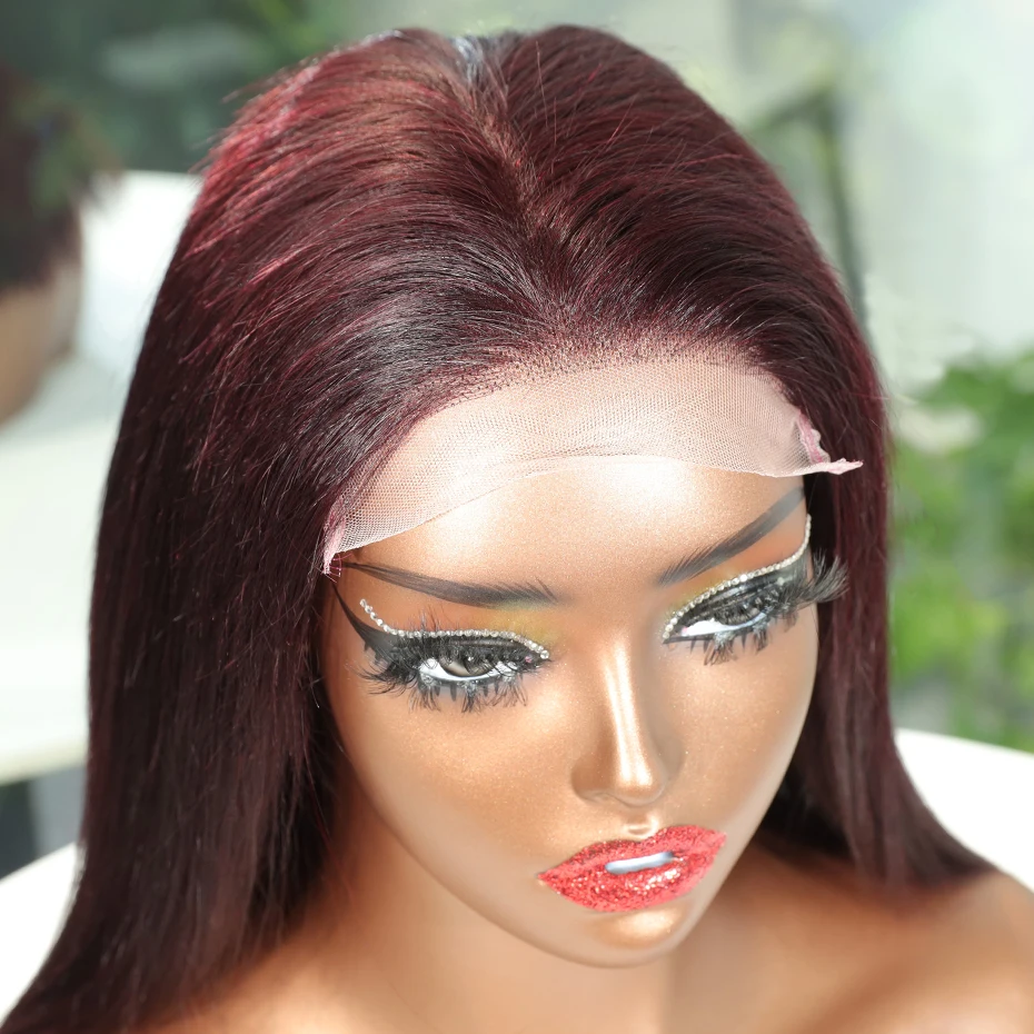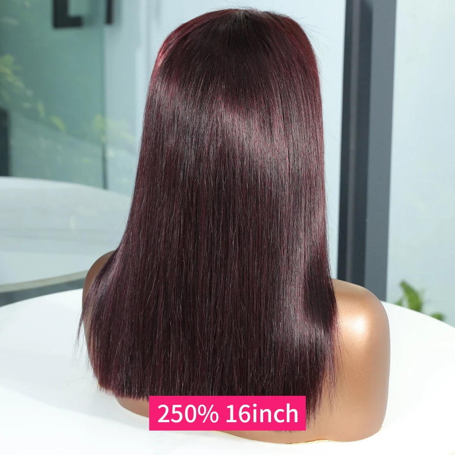 13x6 13x4 Frontal Bob 100%Human Hair Lace Front Wig Dark 99J Burgundy Square Cut Raw Vietnamese Bone Straight 250% Pre Plucked