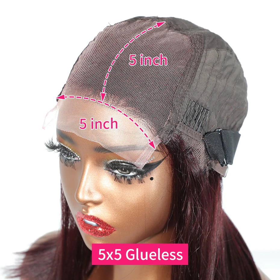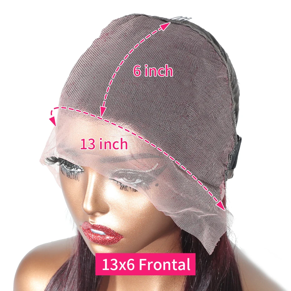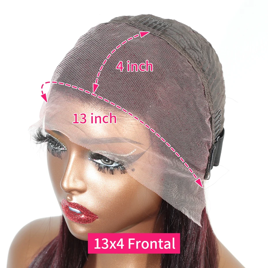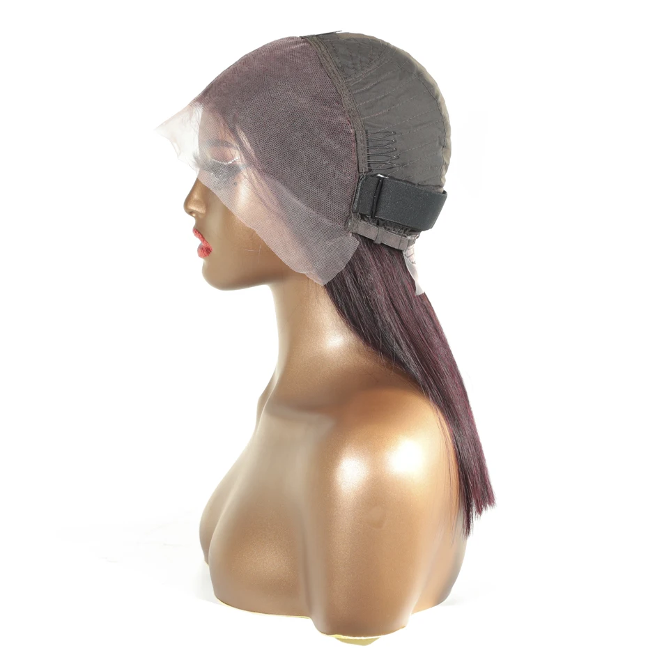 13x6 13x4 Frontal Bob 100%Human Hair Lace Front Wig Dark 99J Burgundy Square Cut Raw Vietnamese Bone Straight 250% Pre Plucked