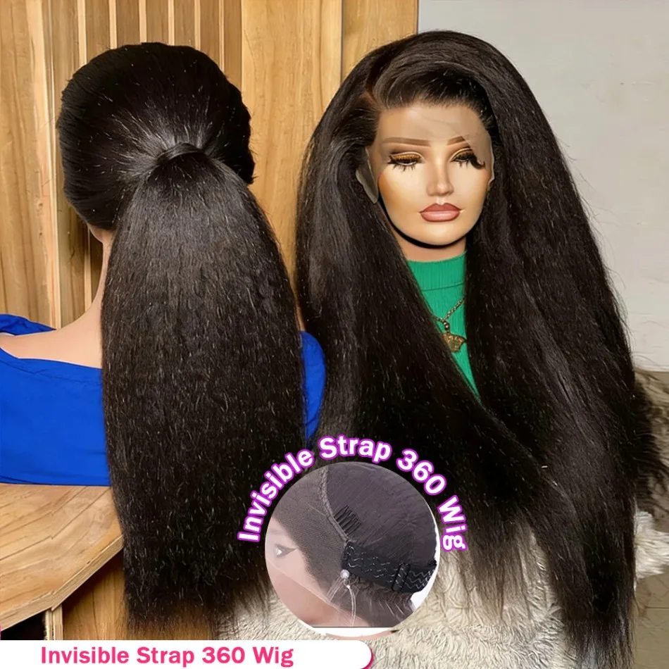 Kinky Straight Human Hair Wigs 100% 360 Lace Front Wig Invisible Strap HD Pre Plucked Brazilian Hair 360 Full Lace Wig For Women